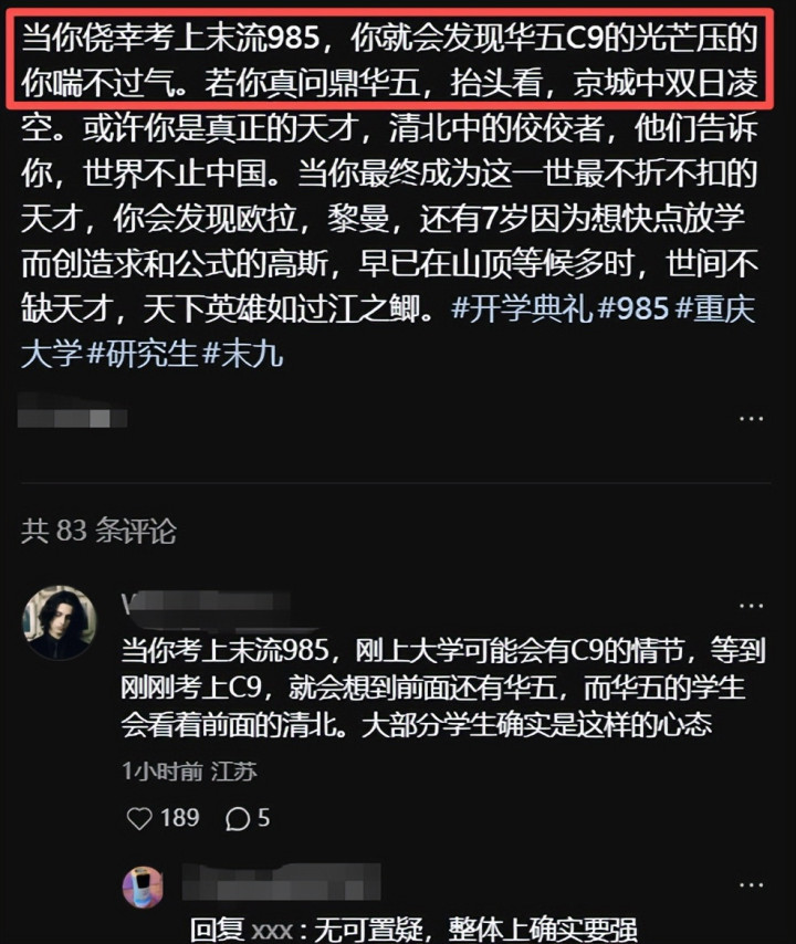 就像在评论区里,大家都在说,至少你还是985的,而且985就是985,何必有流之说呢?
